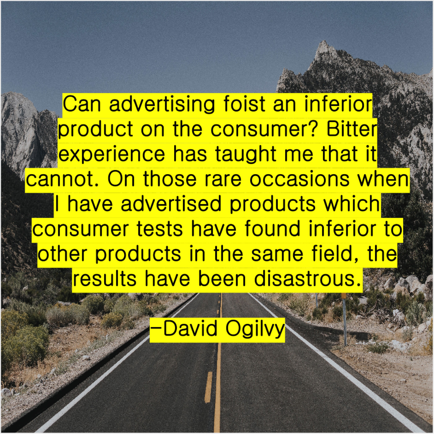 “Can advertising foist an inferior product on the consumer? Bitter experience has taught me that it cannot. On those rare occasions when I have advertised products which consumer tests have found inferior to other products in the same field, the results have been disastrous.”