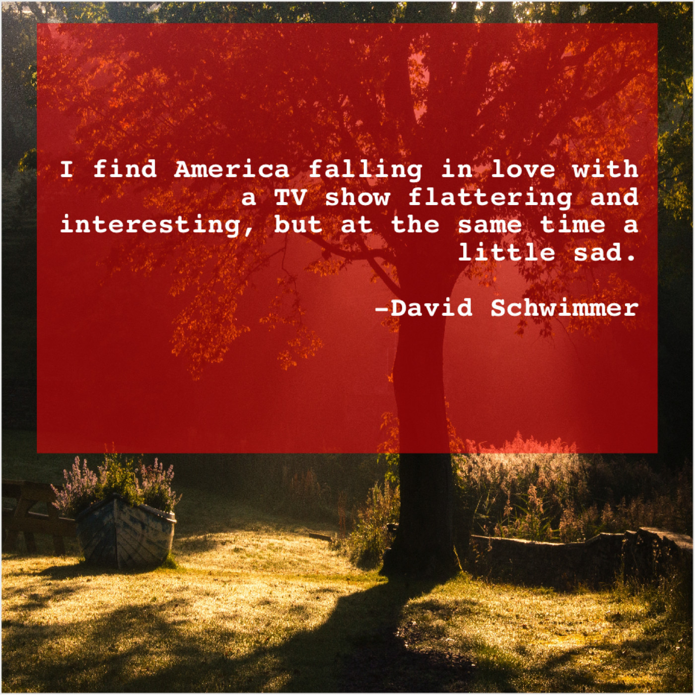 David Schwimmer David Schwimmer – I find America falling in… July 10, 2019 admin “I find America falling in love with a TV show flattering and interesting, but at the same time a little sad.”-David Schwimmer