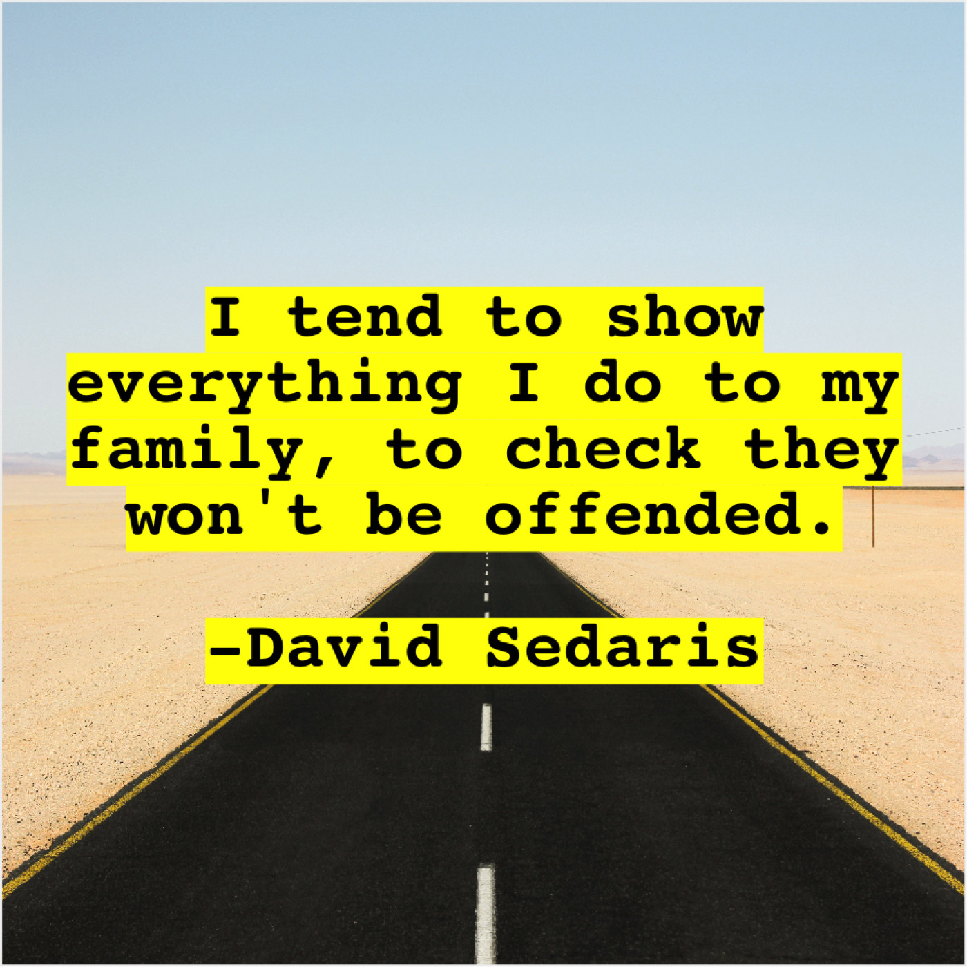 David Sedaris David Sedaris – I tend to show everything… August 8, 2019 admin “I tend to show everything I do to my family, to check they won’t be offended.”-David Sedaris