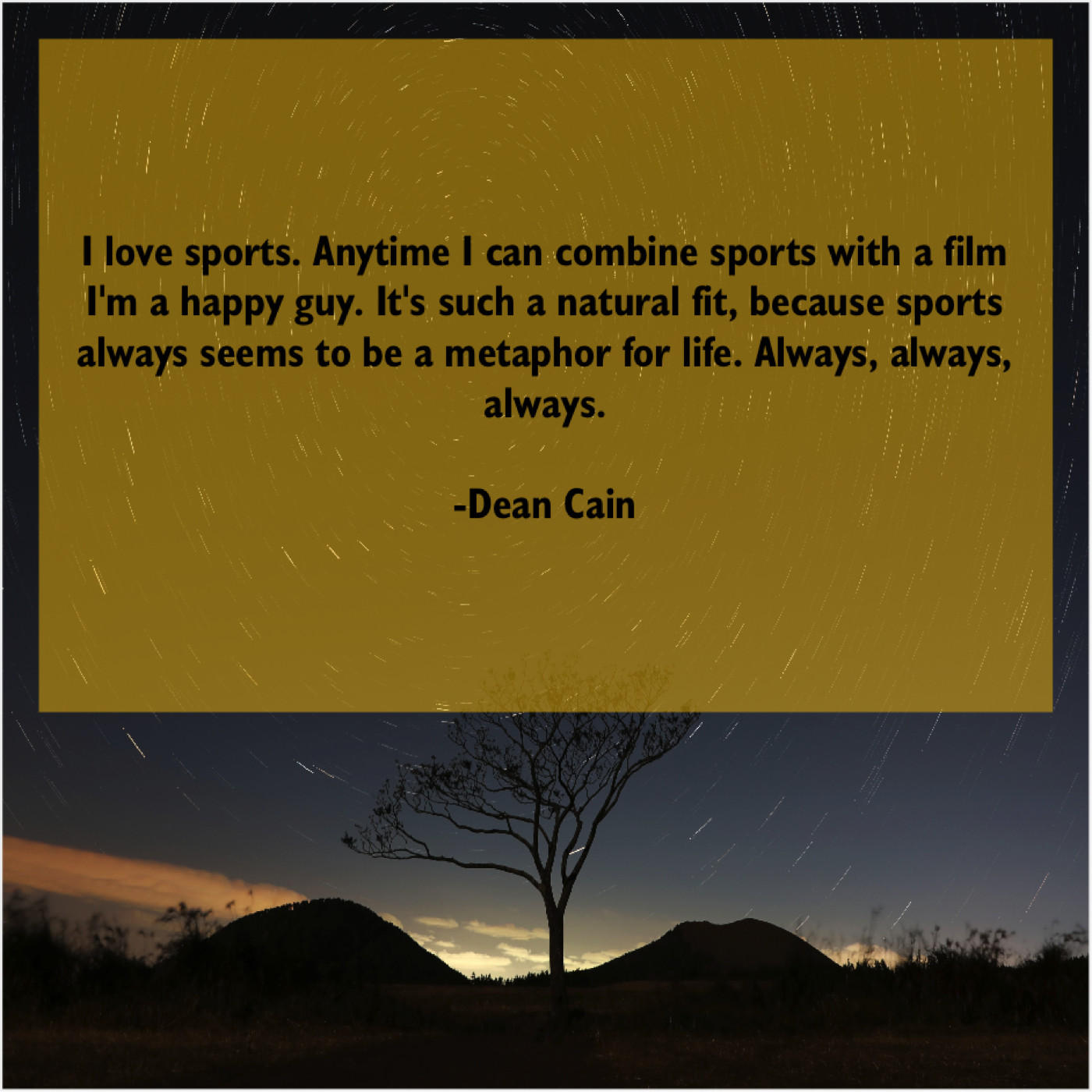 Dean Cain Dean Cain – I love sports. Anytime I… May 10, 2019 admin “I love sports. Anytime I can combine sports with a film I’m a happy guy. It’s such a natural fit, because sports always seems to be a metaphor for life. Always, always, always.”-Dean Cain