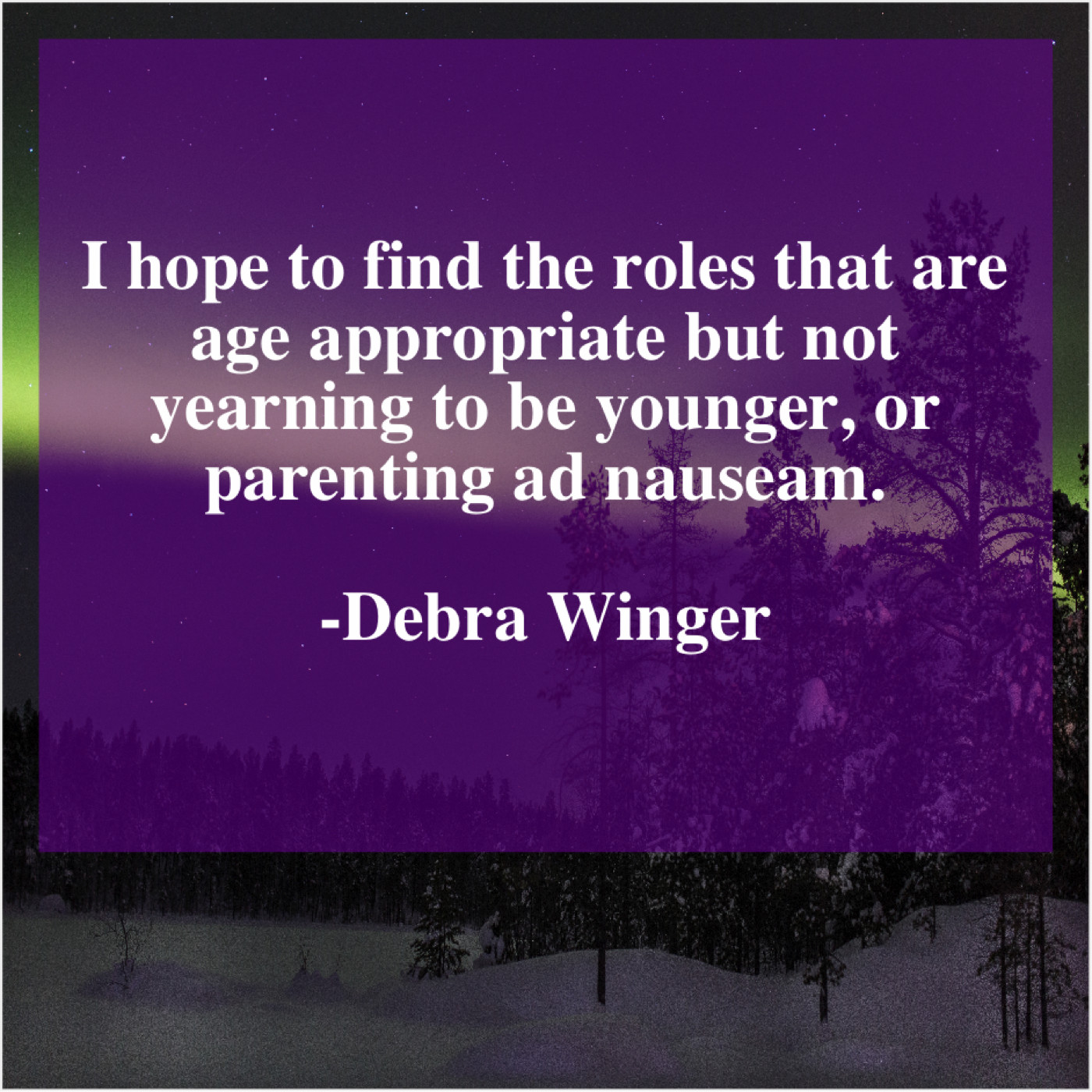 Debra Winger Debra Winger – I hope to find the… January 22, 2019 admin “I hope to find the roles that are age appropriate but not yearning to be younger, or parenting ad nauseam.”-Debra Winger