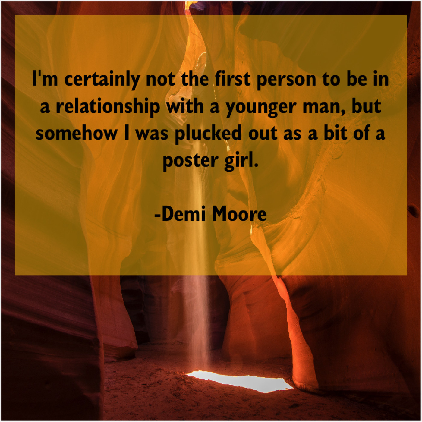Demi Moore Demi Moore – I’m certainly not the first… July 23, 2019 admin “I’m certainly not the first person to be in a relationship with a younger man, but somehow I was plucked out as a bit of a poster girl.”-Demi Moore