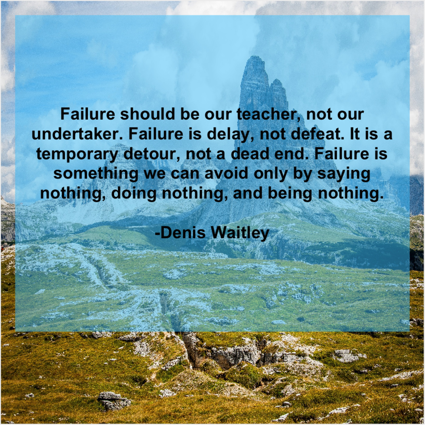 Denis Waitley Denis Waitley – Failure should be our teacher… May 27, 2019 admin “Failure should be our teacher, not our undertaker. Failure is delay, not defeat. It is a temporary detour, not a dead end. Failure is something we can avoid only by saying nothing, doing nothing, and being nothing.”-Denis Waitley