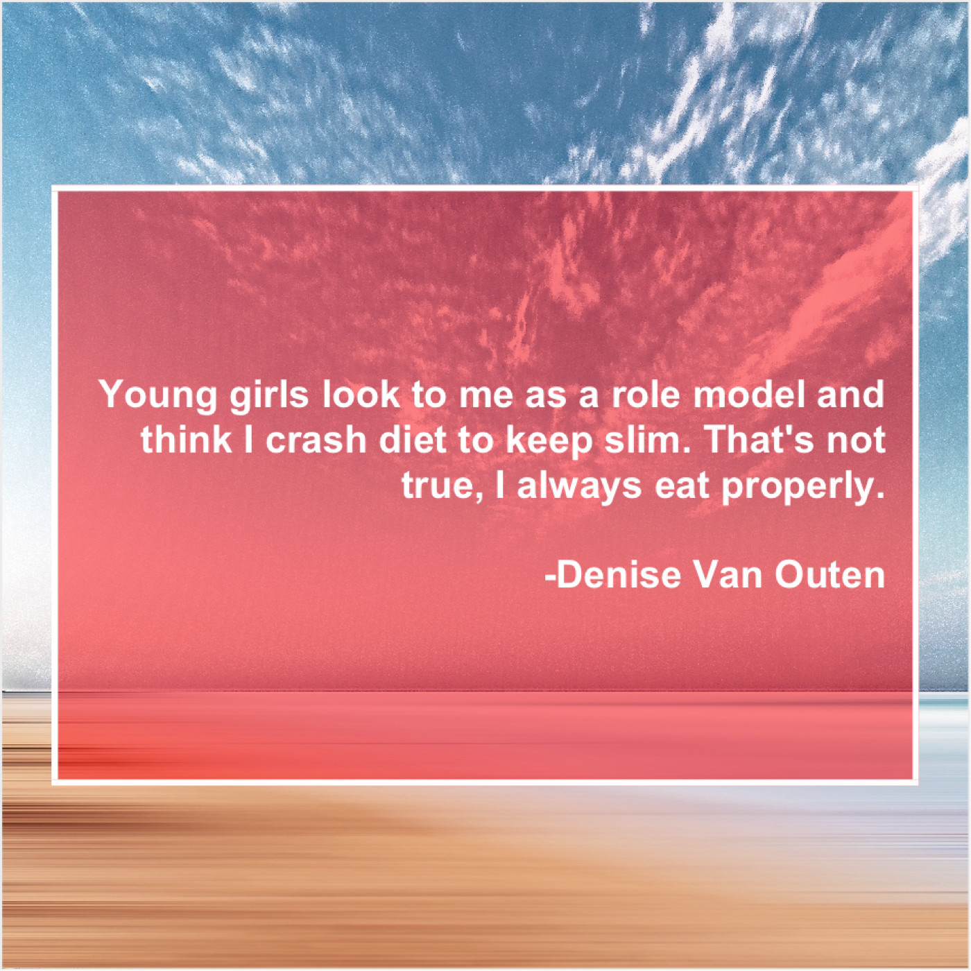 Denise Van Outen Denise Van Outen – Young girls look to me… December 10, 2018 admin “Young girls look to me as a role model and think I crash diet to keep slim. That’s not true, I always eat properly.”-Denise Van Outen