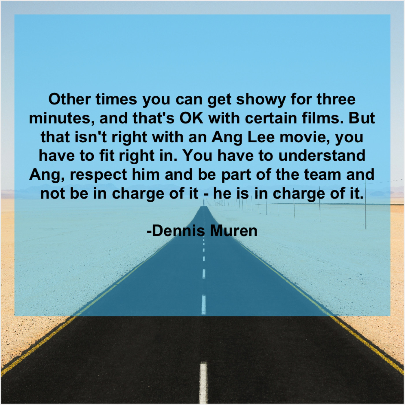 “Other times you can get showy for three minutes, and that’s OK with certain films. But that isn’t right with an Ang Lee movie, you have to fit right in. You have to understand Ang, respect him and be part of the team and not be in charge of it – he is in charge of it.”