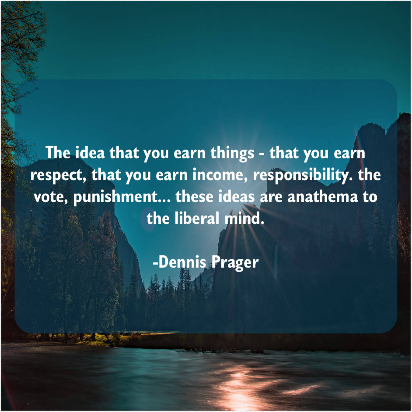 Dennis Prager Dennis Prager – The idea that you earn… October 5, 2019 admin “The idea that you earn things – that you earn respect, that you earn income, responsibility. the vote, punishment… these ideas are anathema to the liberal mind.”-Dennis Prager