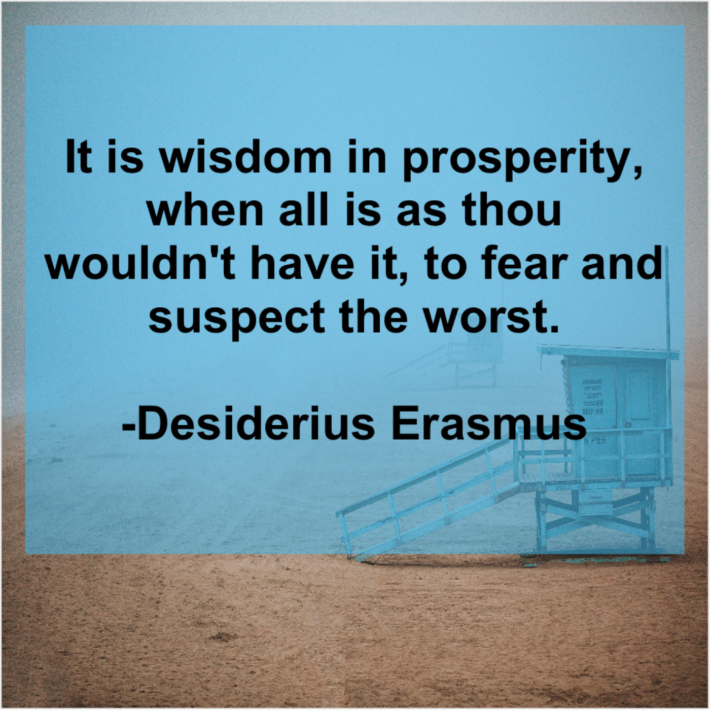 Desiderius Erasmus Desiderius Erasmus – It is wisdom in prosperity… July 3, 2019 admin “It is wisdom in prosperity, when all is as thou wouldn’t have it, to fear and suspect the worst.”-Desiderius Erasmus