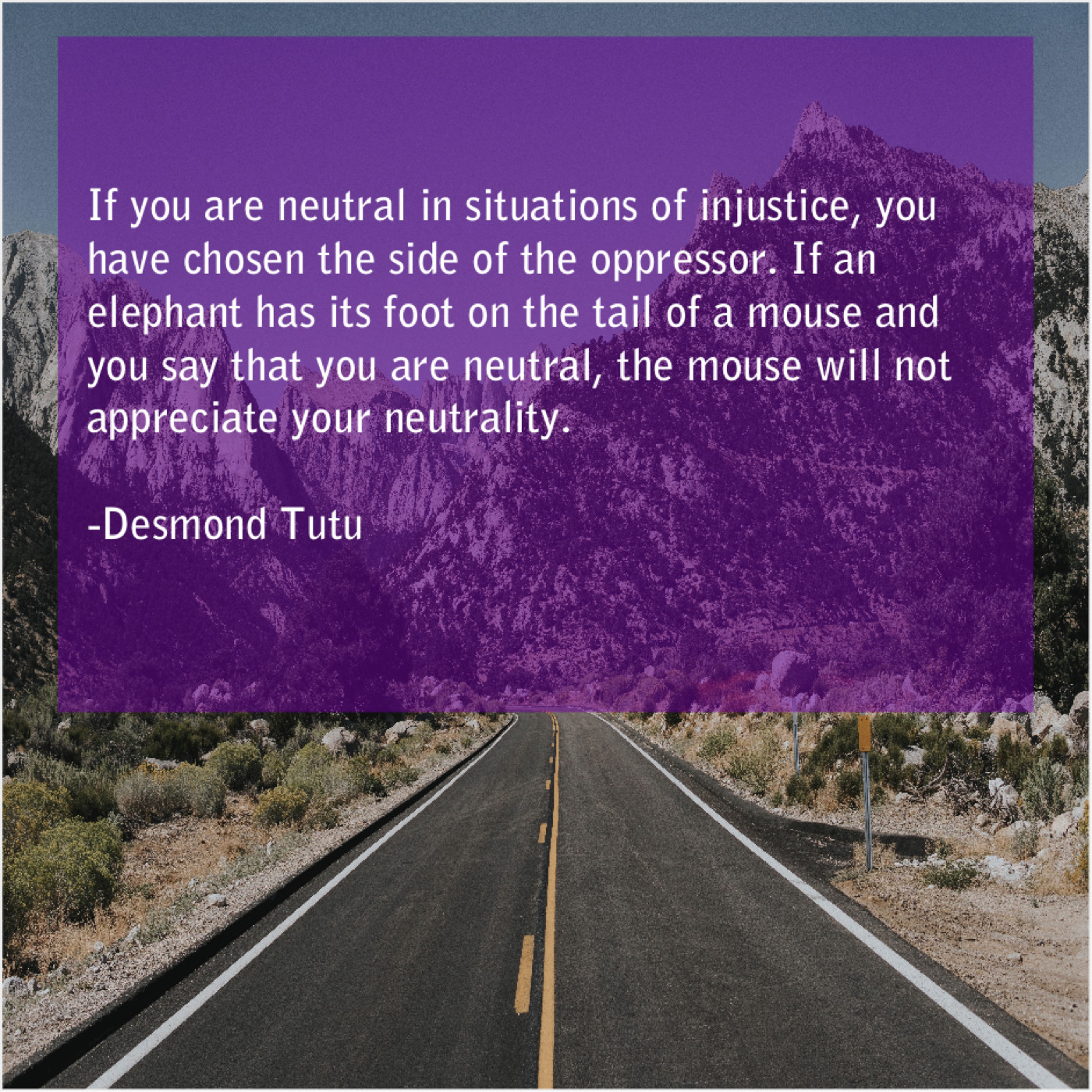 “If you are neutral in situations of injustice, you have chosen the side of the oppressor. If an elephant has its foot on the tail of a mouse and you say that you are neutral, the mouse will not appreciate your neutrality.”