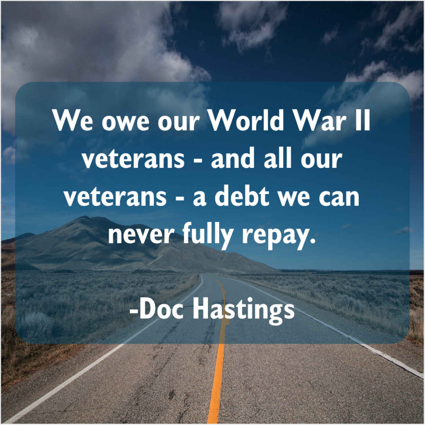 Doc Hastings Doc Hastings – We owe our World War… March 21, 2019 admin “We owe our World War II veterans – and all our veterans – a debt we can never fully repay.”-Doc Hastings