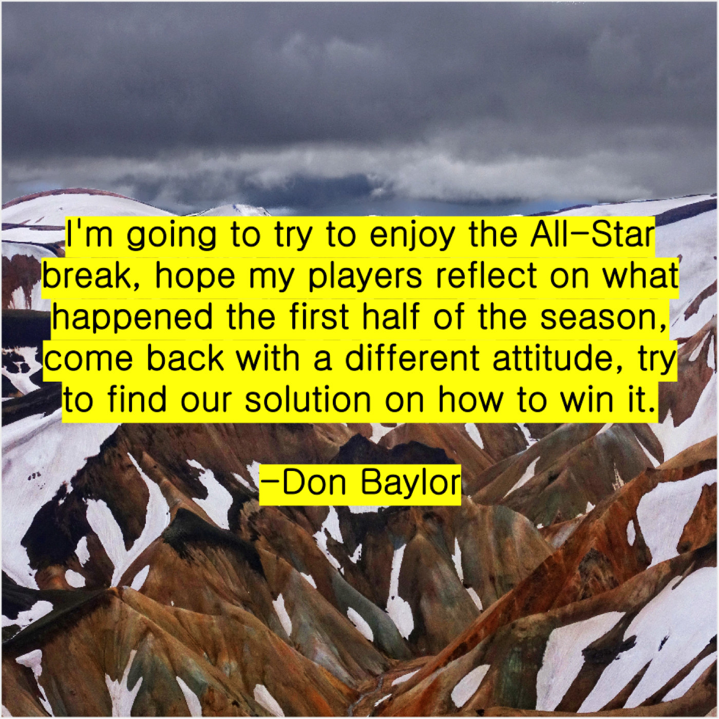 Don Baylor Don Baylor – I’m going to try to… November 14, 2018 admin “I’m going to try to enjoy the All-Star break, hope my players reflect on what happened the first half of the season, come back with a different attitude, try to find our solution on how to win it.”-Don Baylor