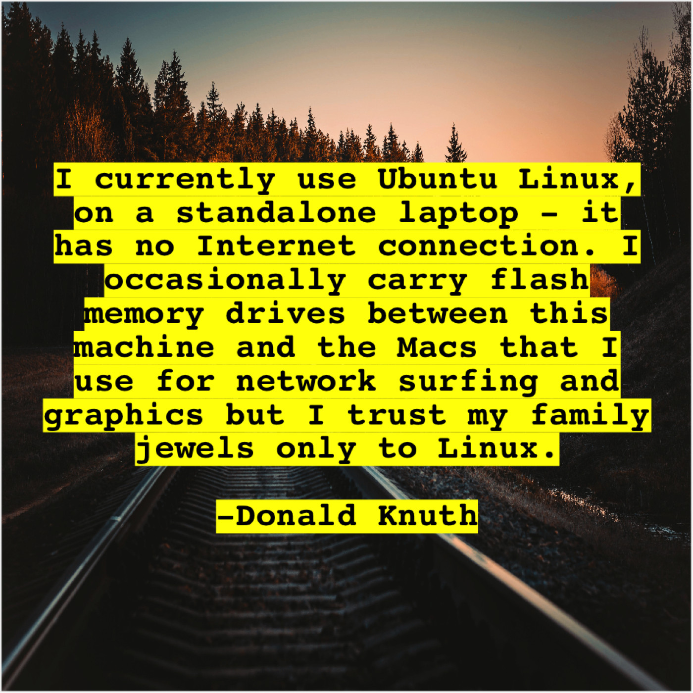 “I currently use Ubuntu Linux, on a standalone laptop – it has no Internet connection. I occasionally carry flash memory drives between this machine and the Macs that I use for network surfing and graphics but I trust my family jewels only to Linux.”