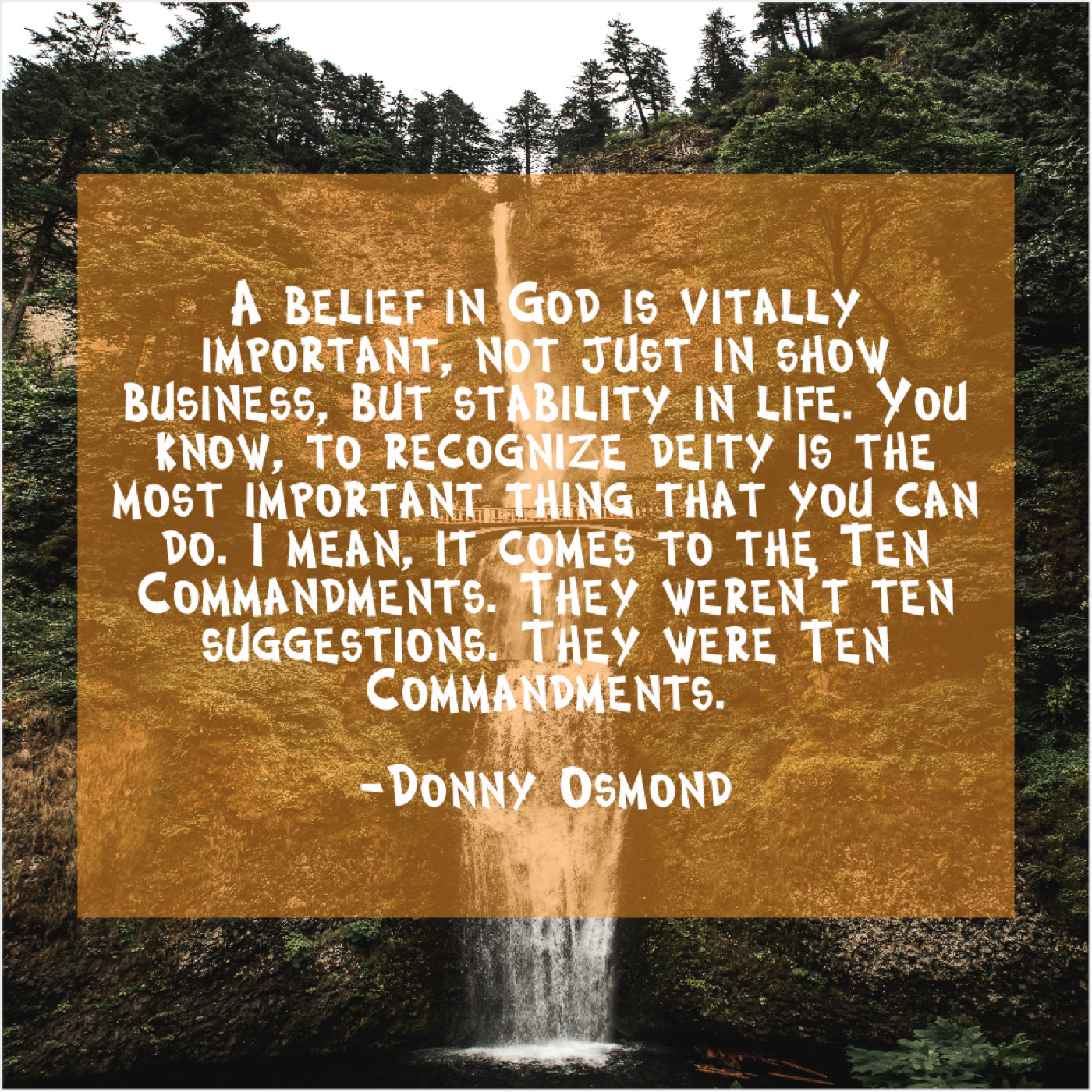 “A belief in God is vitally important, not just in show business, but stability in life. You know, to recognize deity is the most important thing that you can do. I mean, it comes to the Ten Commandments. They weren’t ten suggestions. They were Ten Commandments.”
