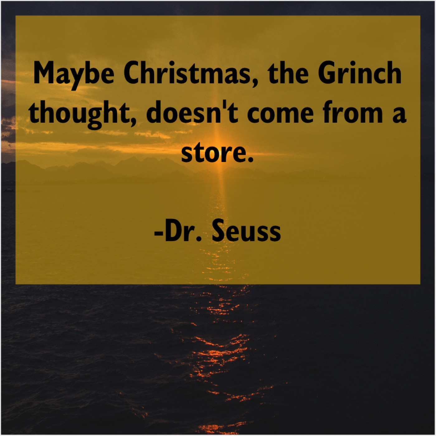 Dr. Seuss Dr. Seuss – Maybe Christmas, the Grinch thought… November 16, 2018 admin “Maybe Christmas, the Grinch thought, doesn’t come from a store.”-Dr. Seuss