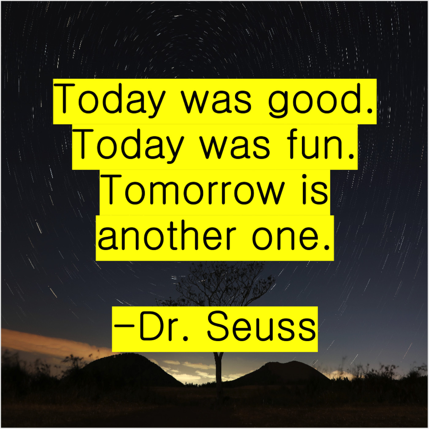 Dr. Seuss Dr. Seuss – Today was good. Today was… April 30, 2019 admin “Today was good. Today was fun. Tomorrow is another one.”-Dr. Seuss