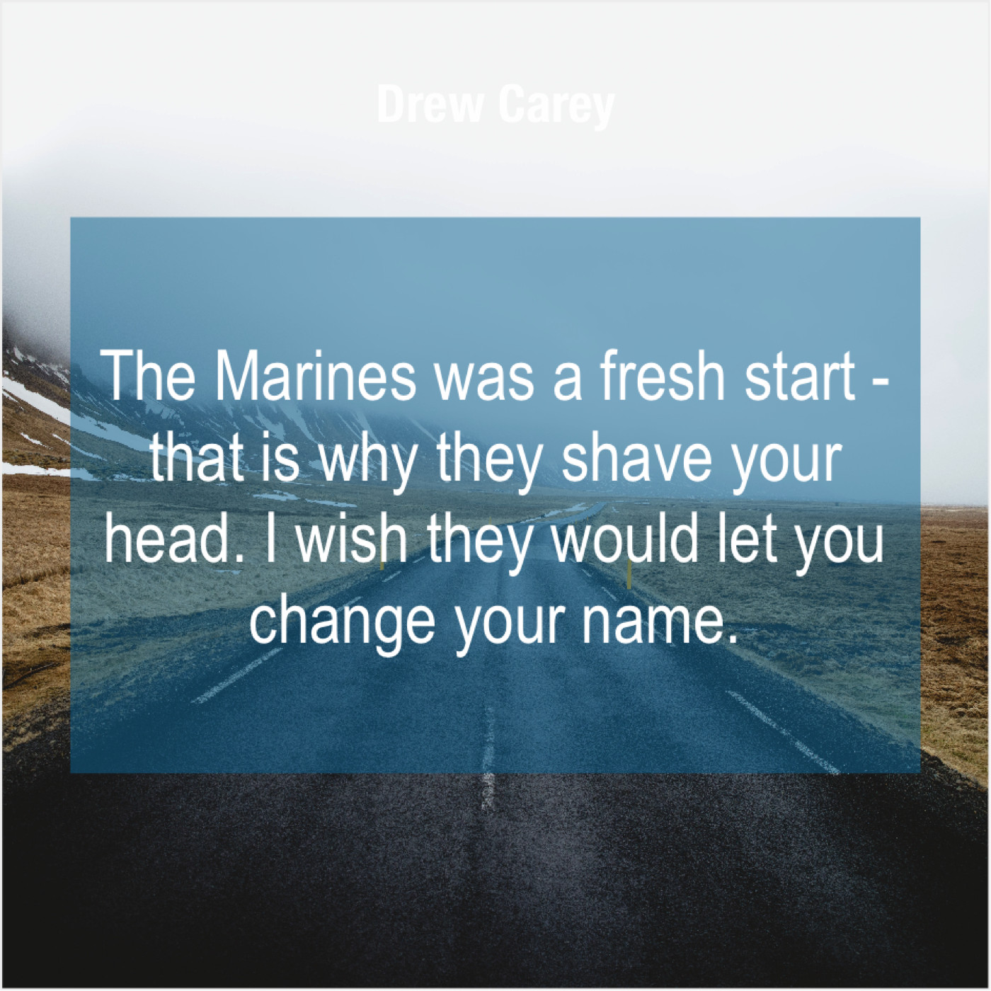 Drew Carey Drew Carey – The Marines was a fresh… May 9, 2019 admin “The Marines was a fresh start – that is why they shave your head. I wish they would let you change your name.”-Drew Carey