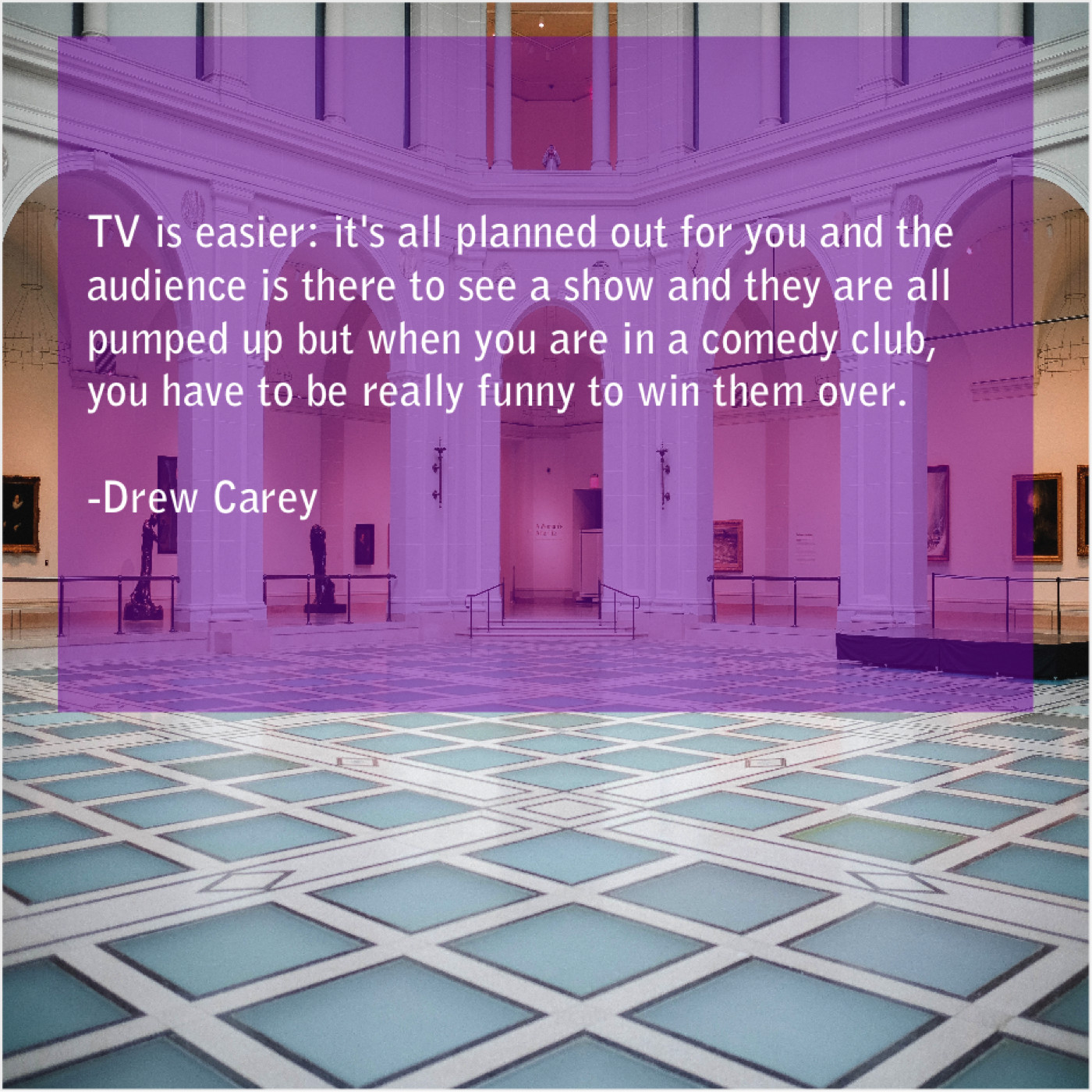 Drew Carey Drew Carey – TV is easier: it’s all… March 18, 2019 admin “TV is easier: it’s all planned out for you and the audience is there to see a show and they are all pumped up but when you are in a comedy club, you have to be really funny to win them over.”-Drew Carey