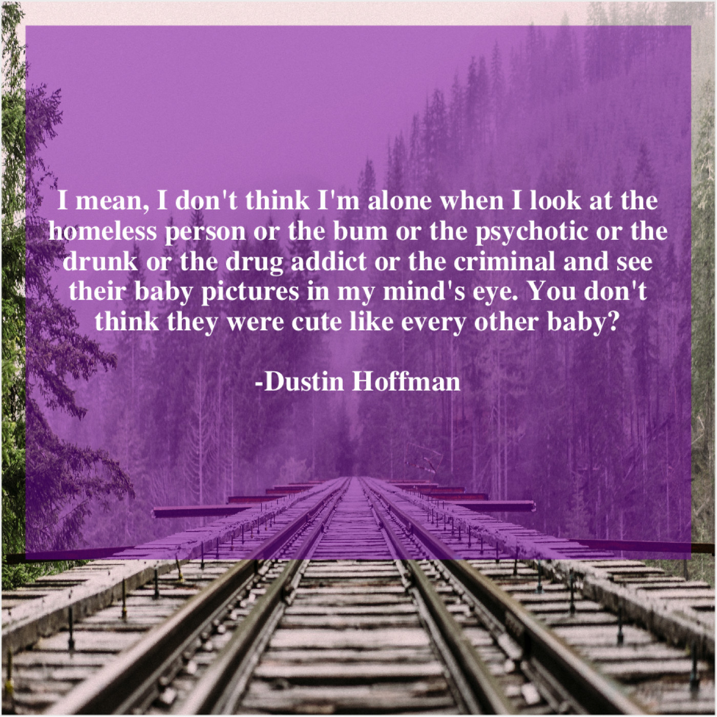 “I mean, I don’t think I’m alone when I look at the homeless person or the bum or the psychotic or the drunk or the drug addict or the criminal and see their baby pictures in my mind’s eye. You don’t think they were cute like every other baby?”