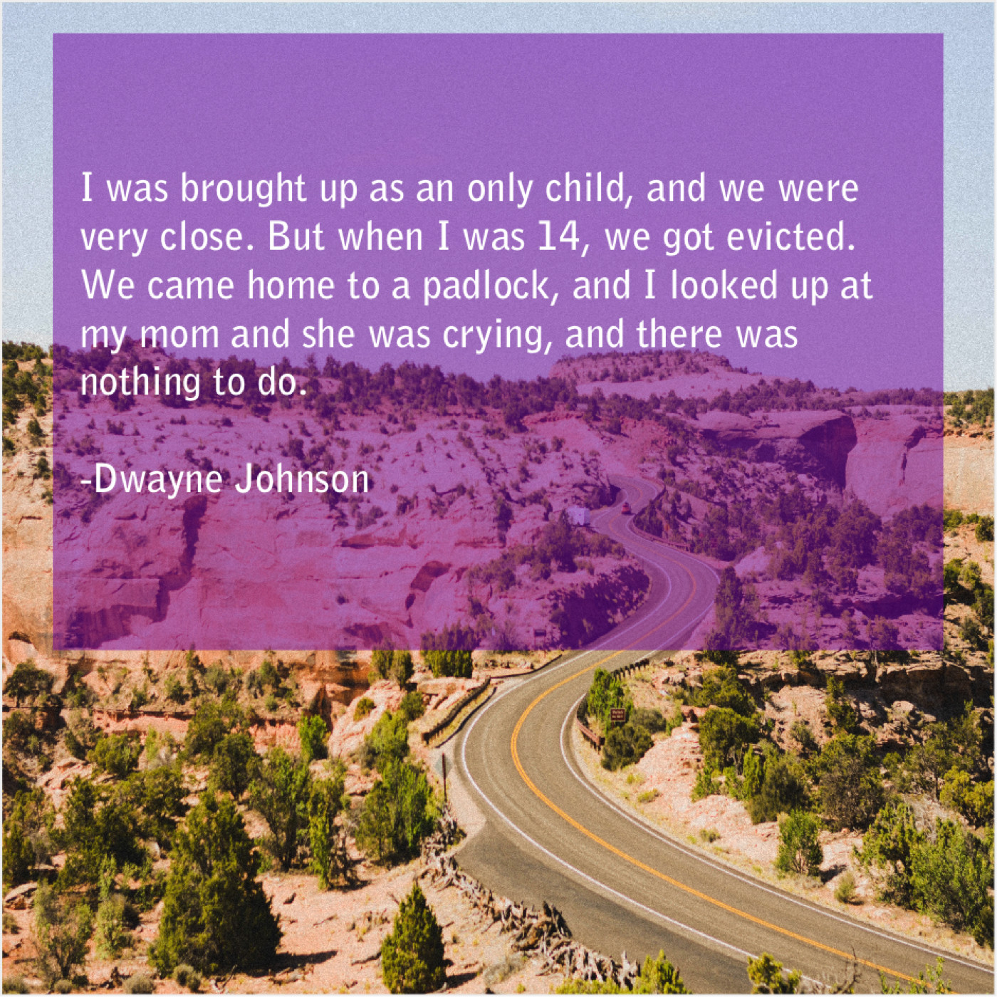 Dwayne Johnson Dwayne Johnson – I was brought up as… November 10, 2018 admin “I was brought up as an only child, and we were very close. But when I was 14, we got evicted. We came home to a padlock, and I looked up at my mom and she was crying, and there was nothing to do.”-Dwayne Johnson