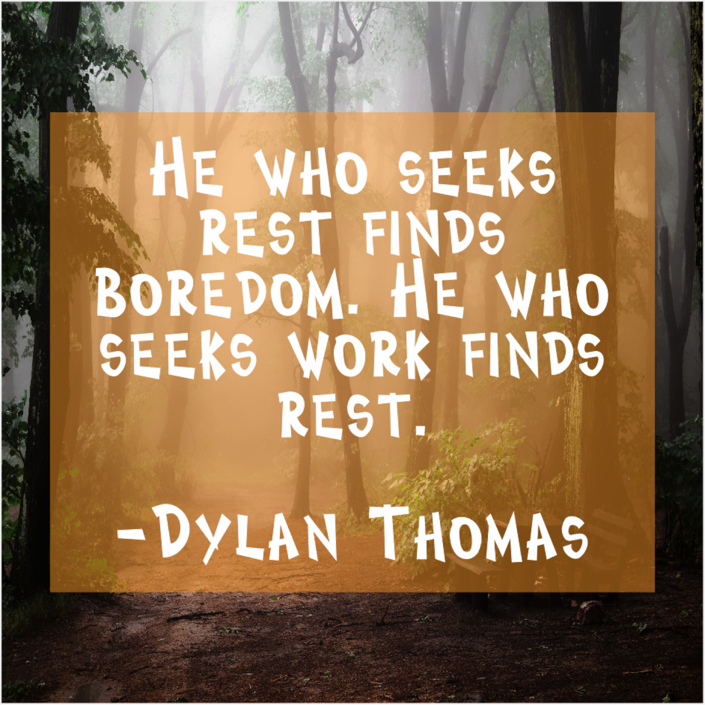 Dylan Thomas Dylan Thomas – He who seeks rest finds… March 30, 2019 admin “He who seeks rest finds boredom. He who seeks work finds rest.”-Dylan Thomas