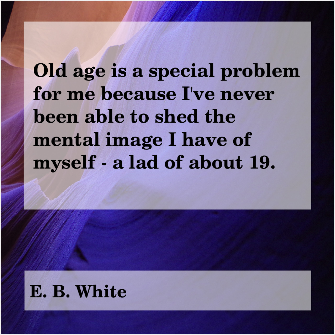 E. B. White E. B. White – Old age is a special… January 10, 2019 admin “Old age is a special problem for me because I’ve never been able to shed the mental image I have of myself – a lad of about 19.”-E. B. White