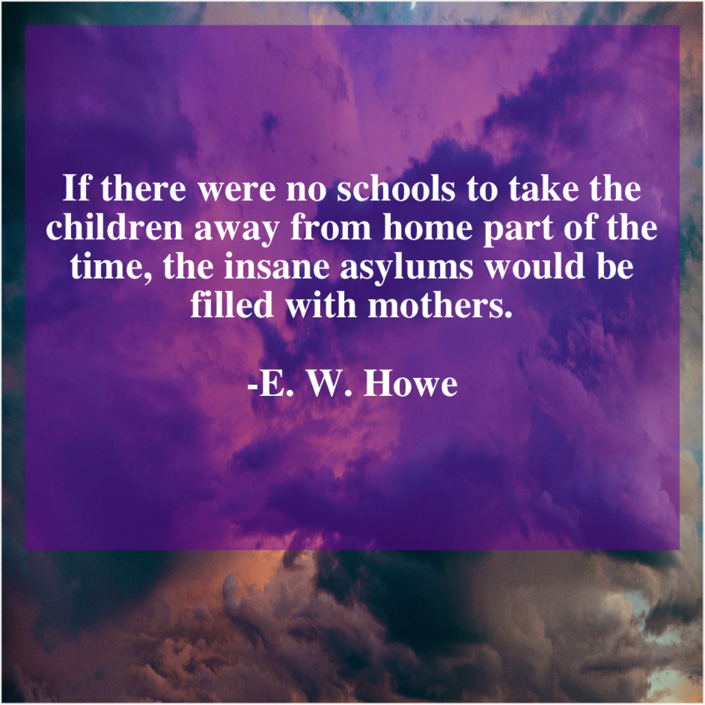 E. W. Howe E. W. Howe – If there were no schools… April 8, 2019 admin “If there were no schools to take the children away from home part of the time, the insane asylums would be filled with mothers.”-E. W. Howe