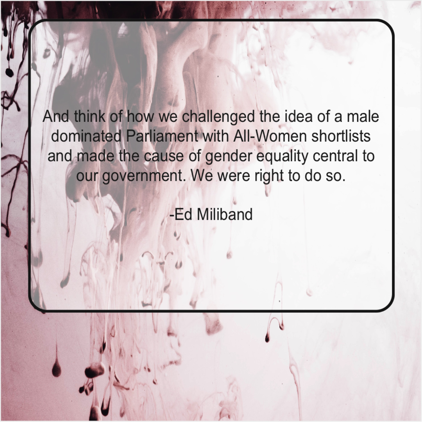 Ed Miliband Ed Miliband – And think of how we… March 24, 2019 admin “And think of how we challenged the idea of a male dominated Parliament with All-Women shortlists and made the cause of gender equality central to our government. We were right to do so.”-Ed Miliband