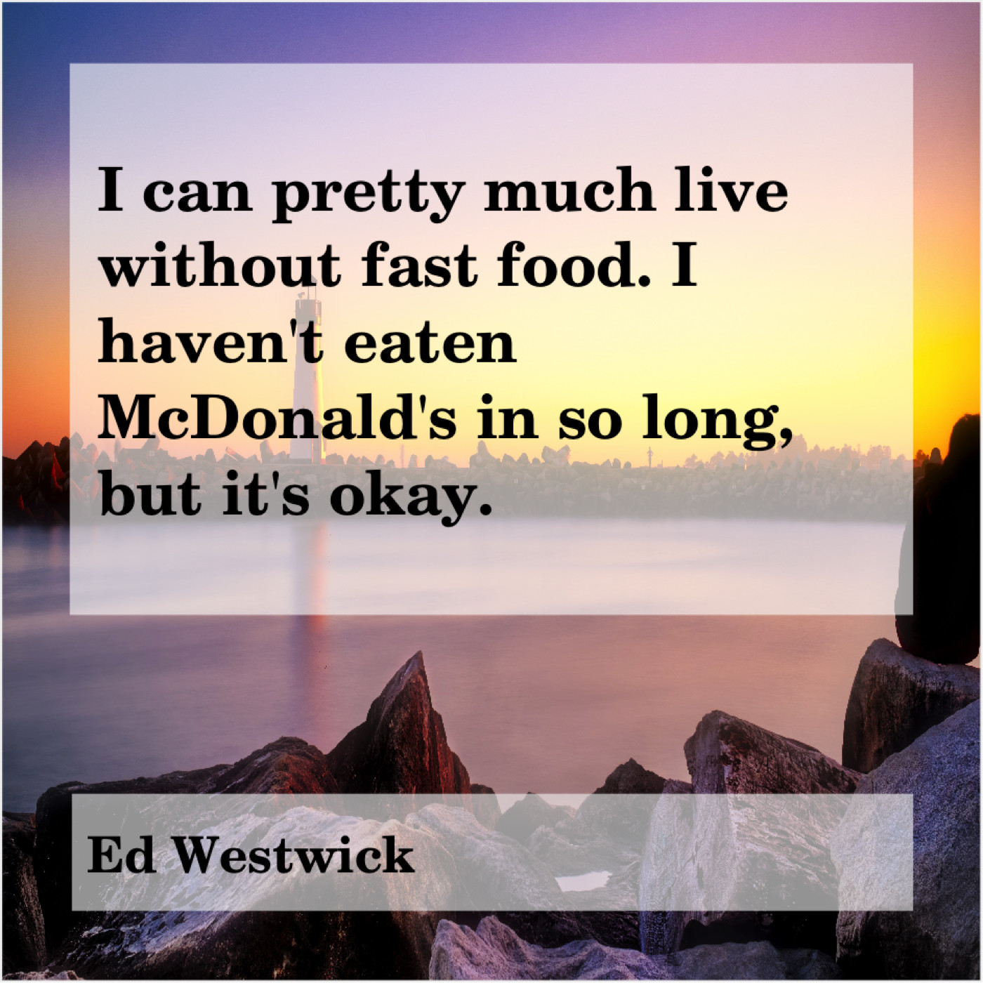 Ed Westwick Ed Westwick – I can pretty much live… June 18, 2019 admin “I can pretty much live without fast food. I haven’t eaten McDonald’s in so long, but it’s okay.”-Ed Westwick