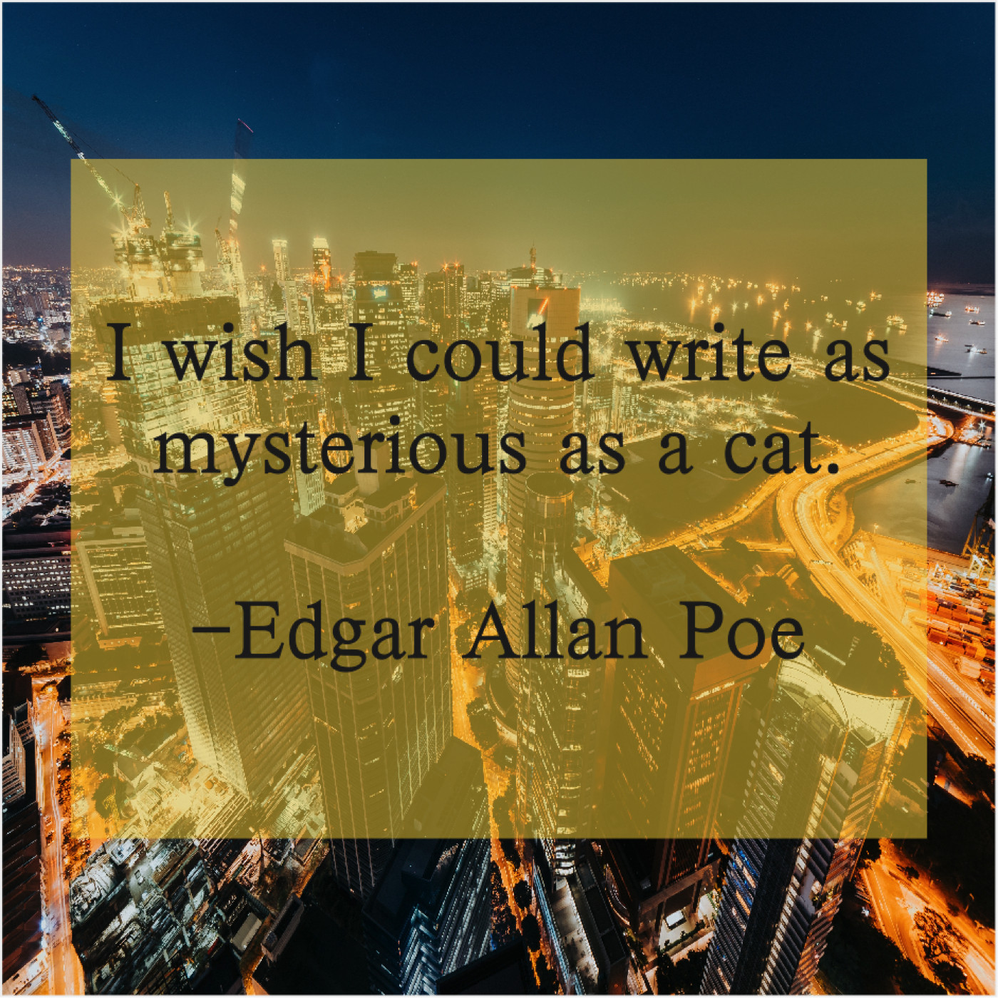 Edgar Allan Poe Edgar Allan Poe – I wish I could write… October 16, 2019 admin “I wish I could write as mysterious as a cat.”-Edgar Allan Poe