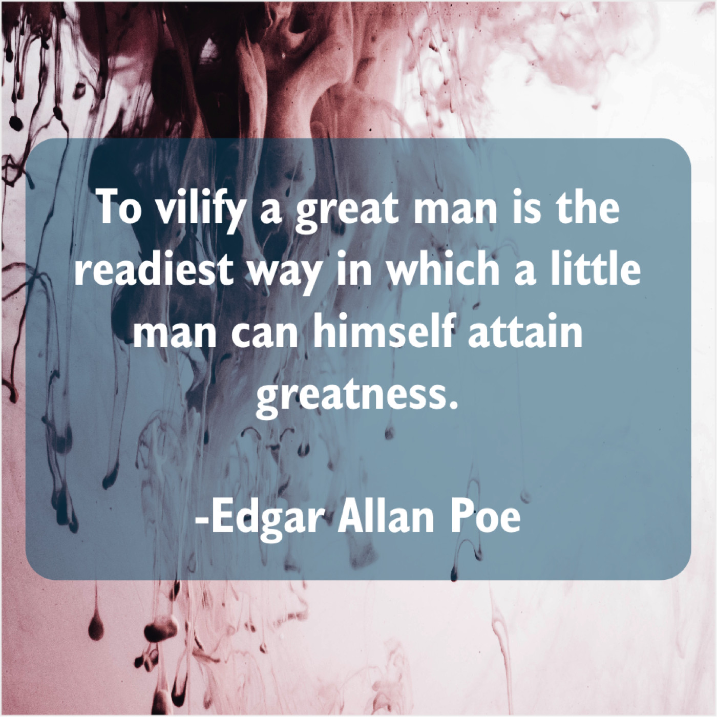 Edgar Allan Poe Edgar Allan Poe – To vilify a great man… August 27, 2019 admin “To vilify a great man is the readiest way in which a little man can himself attain greatness.”-Edgar Allan Poe
