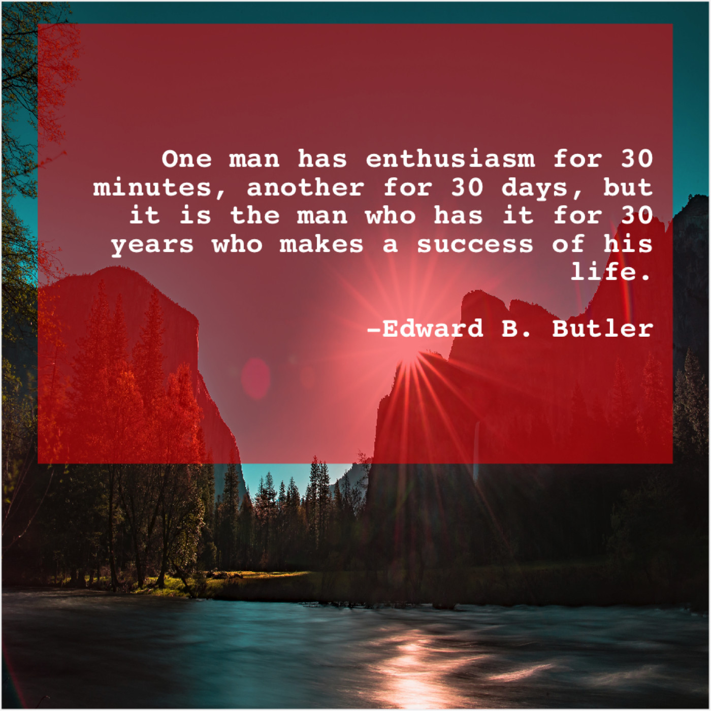 “One man has enthusiasm for 30 minutes, another for 30 days, but it is the man who has it for 30 years who makes a success of his life.”