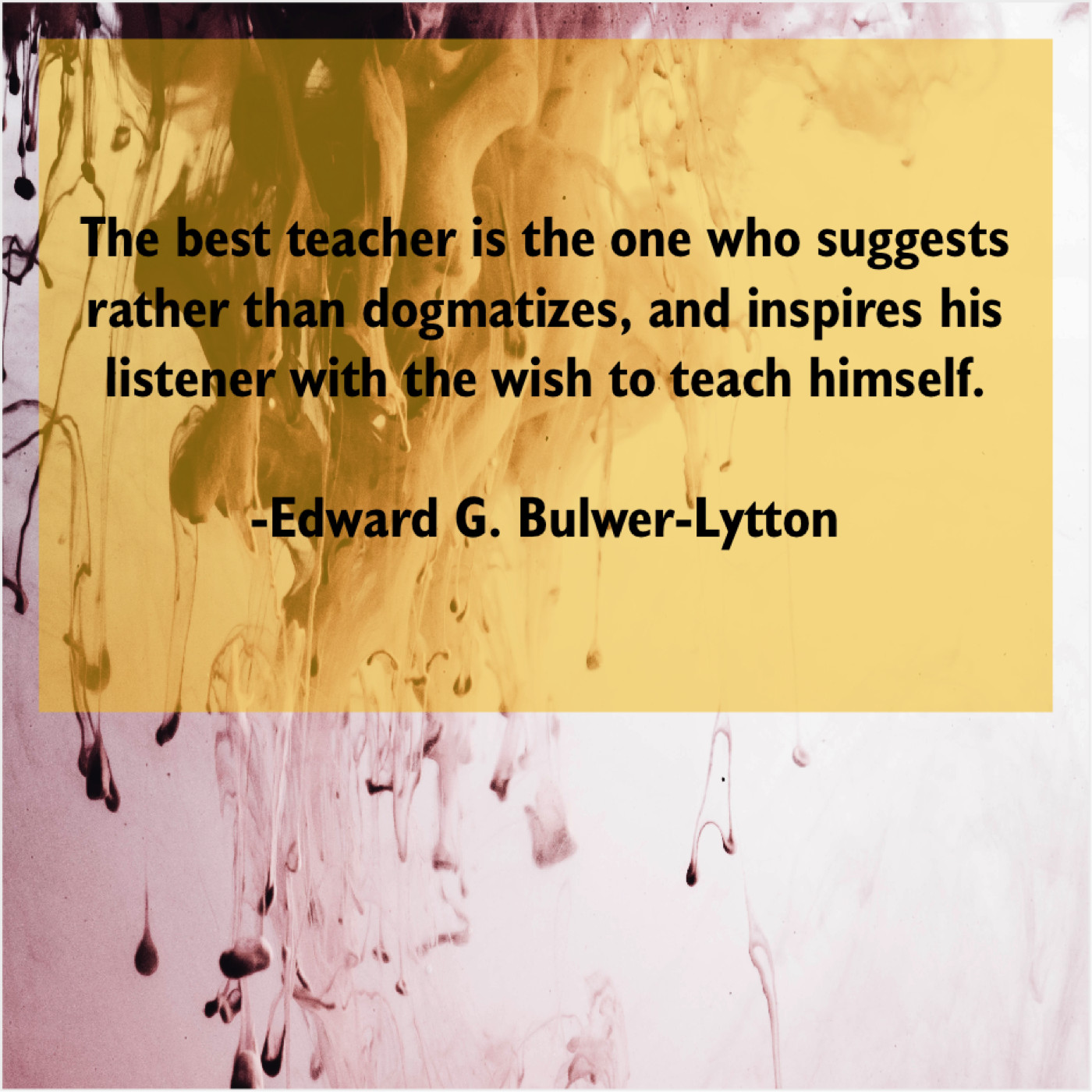 Edward G. Bulwer-Lytton Edward G. Bulwer-Lytton – The best teacher is the… September 29, 2019 admin “The best teacher is the one who suggests rather than dogmatizes, and inspires his listener with the wish to teach himself.”-Edward G. Bulwer-Lytton