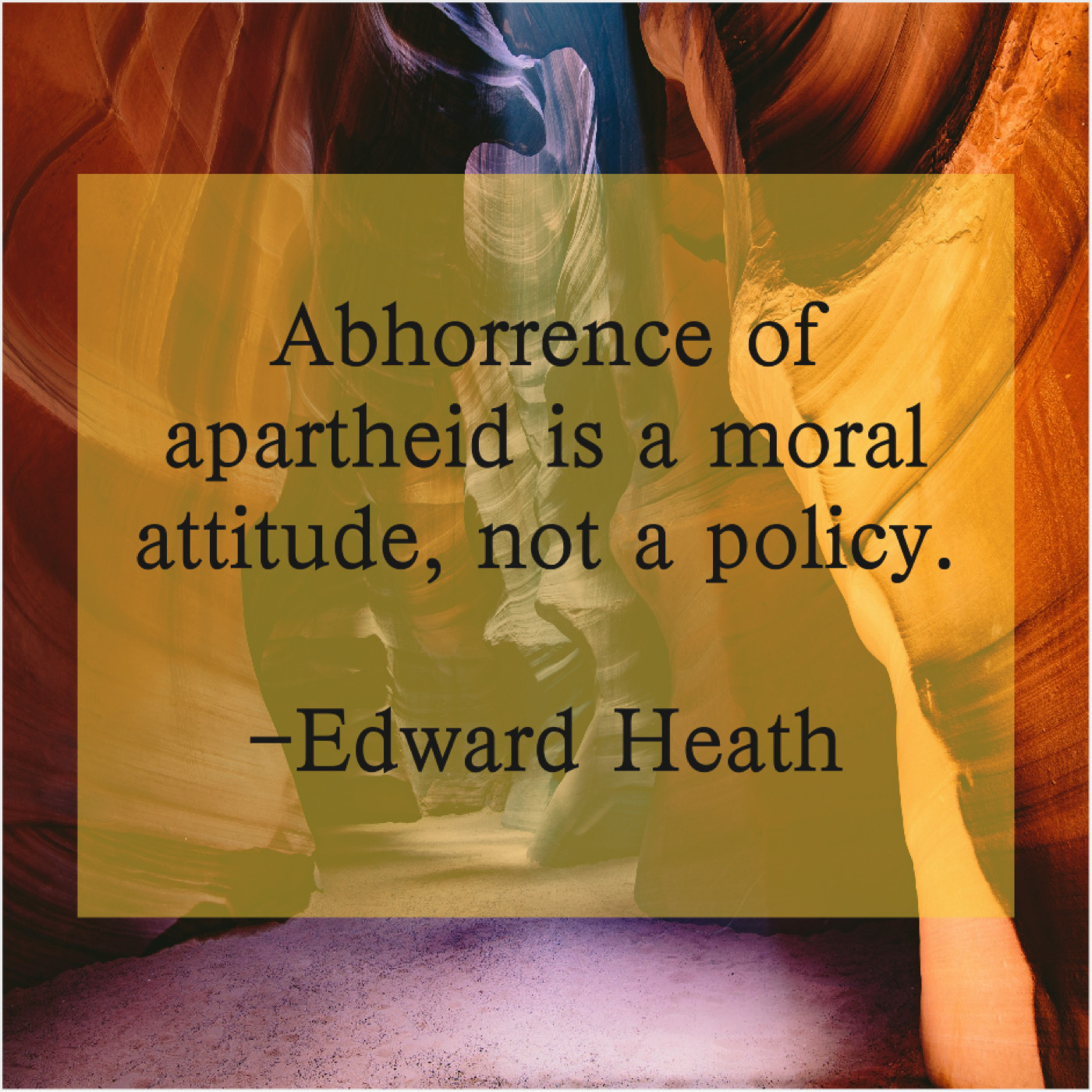 Edward Heath Edward Heath – Abhorrence of apartheid is a… June 13, 2019 admin “Abhorrence of apartheid is a moral attitude, not a policy.”-Edward Heath