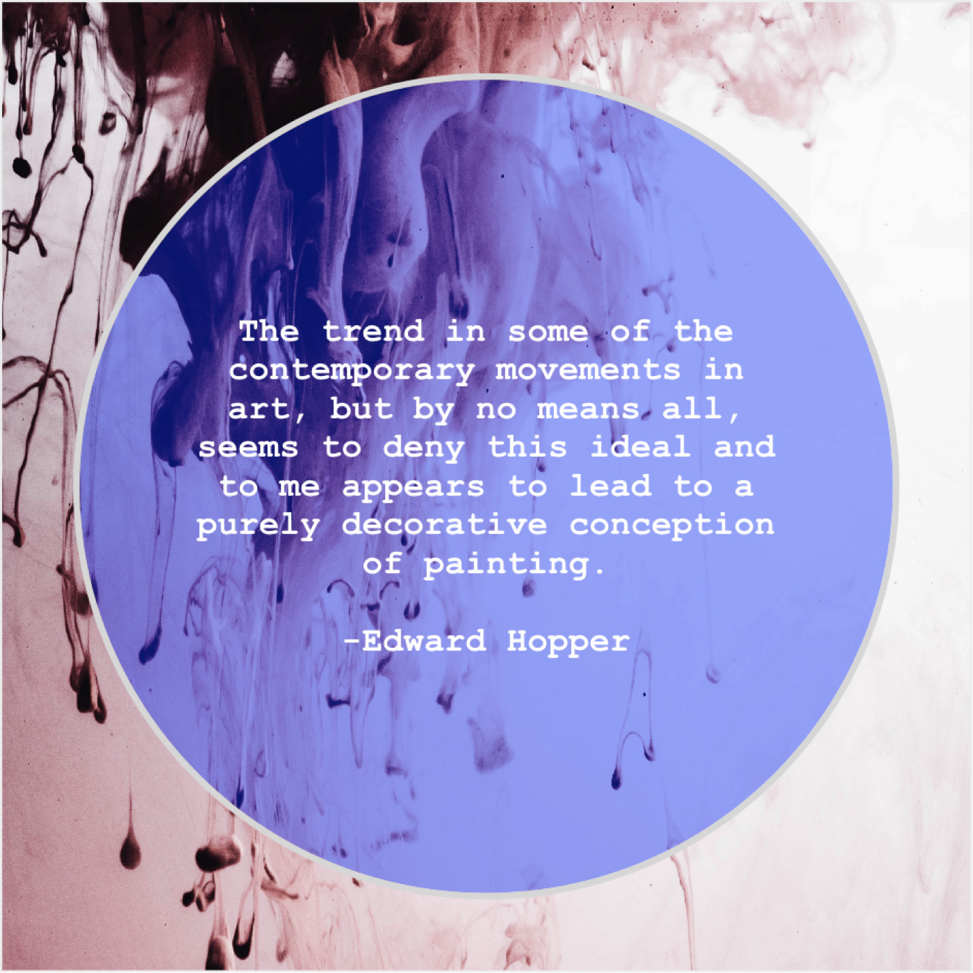 “The trend in some of the contemporary movements in art, but by no means all, seems to deny this ideal and to me appears to lead to a purely decorative conception of painting.”