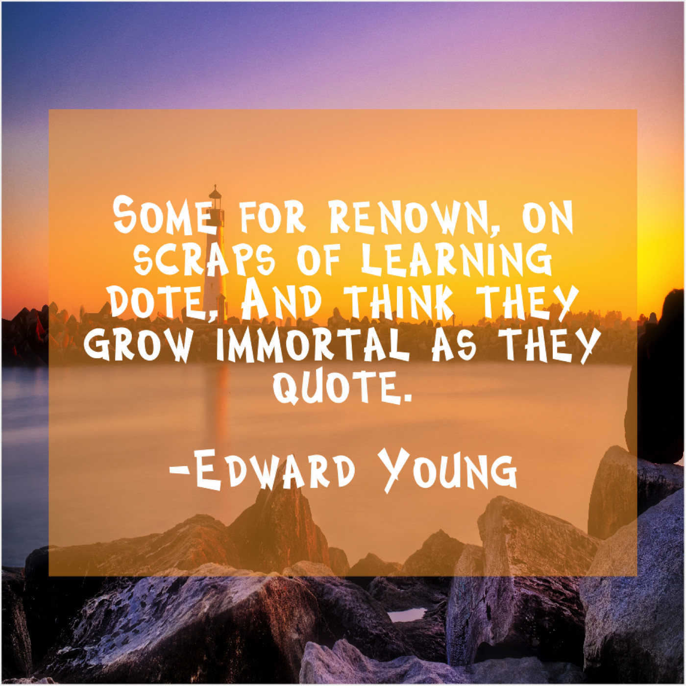 Edward Young Edward Young – Some for renown, on scraps… May 18, 2019 admin “Some for renown, on scraps of learning dote, And think they grow immortal as they quote.”-Edward Young