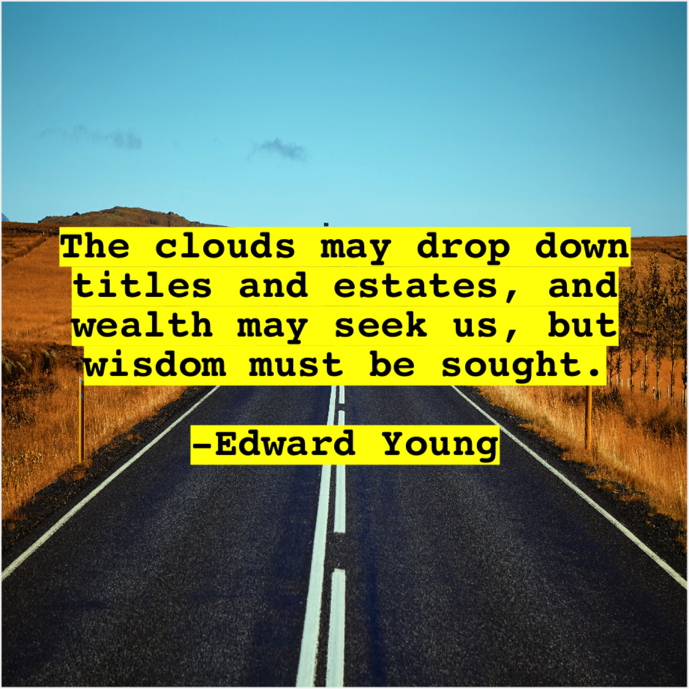 Edward Young Edward Young – The clouds may drop down… June 16, 2019 admin “The clouds may drop down titles and estates, and wealth may seek us, but wisdom must be sought.”-Edward Young