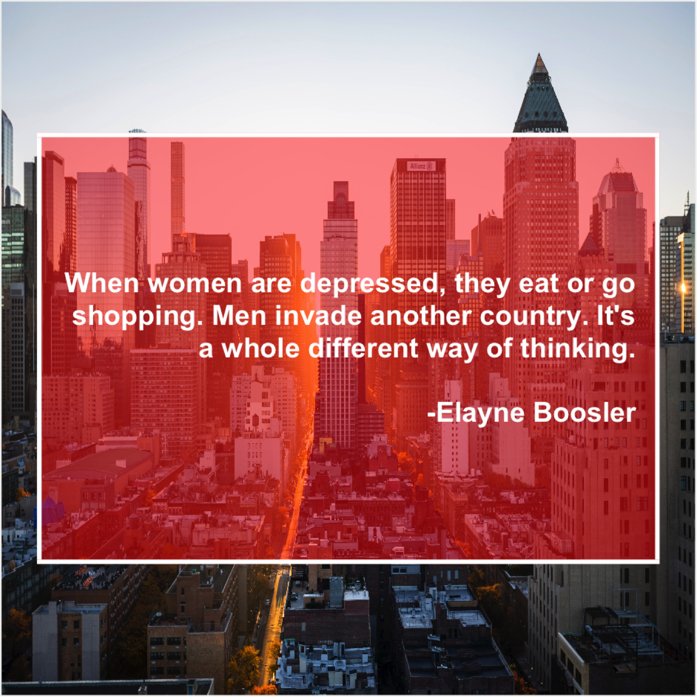 “When women are depressed, they eat or go shopping. Men invade another country. It’s a whole different way of thinking.”