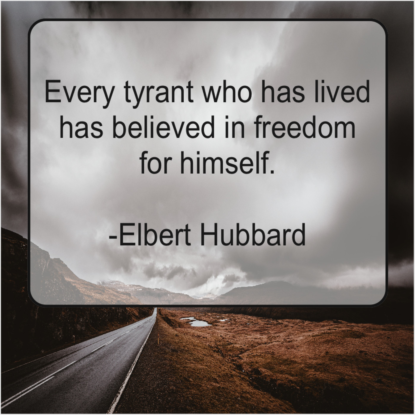 Elbert Hubbard Elbert Hubbard – Every tyrant who has lived… January 29, 2019 admin “Every tyrant who has lived has believed in freedom for himself.”-Elbert Hubbard