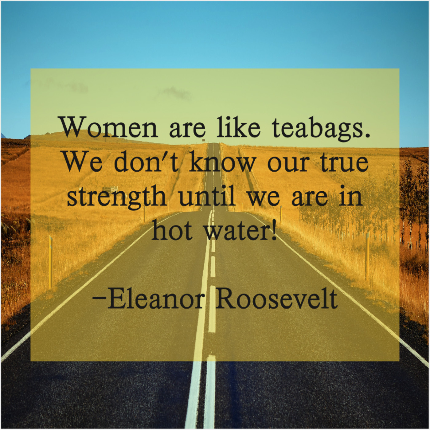 Eleanor Roosevelt Eleanor Roosevelt – Women are like teabags. We… August 10, 2019 admin “Women are like teabags. We don’t know our true strength until we are in hot water!”-Eleanor Roosevelt
