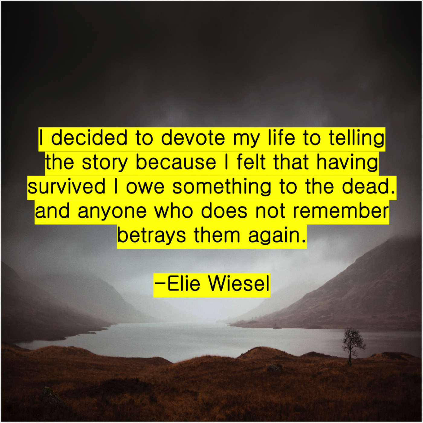 Elie Wiesel Elie Wiesel – I decided to devote my… July 24, 2019 admin “I decided to devote my life to telling the story because I felt that having survived I owe something to the dead. and anyone who does not remember betrays them again.”-Elie Wiesel