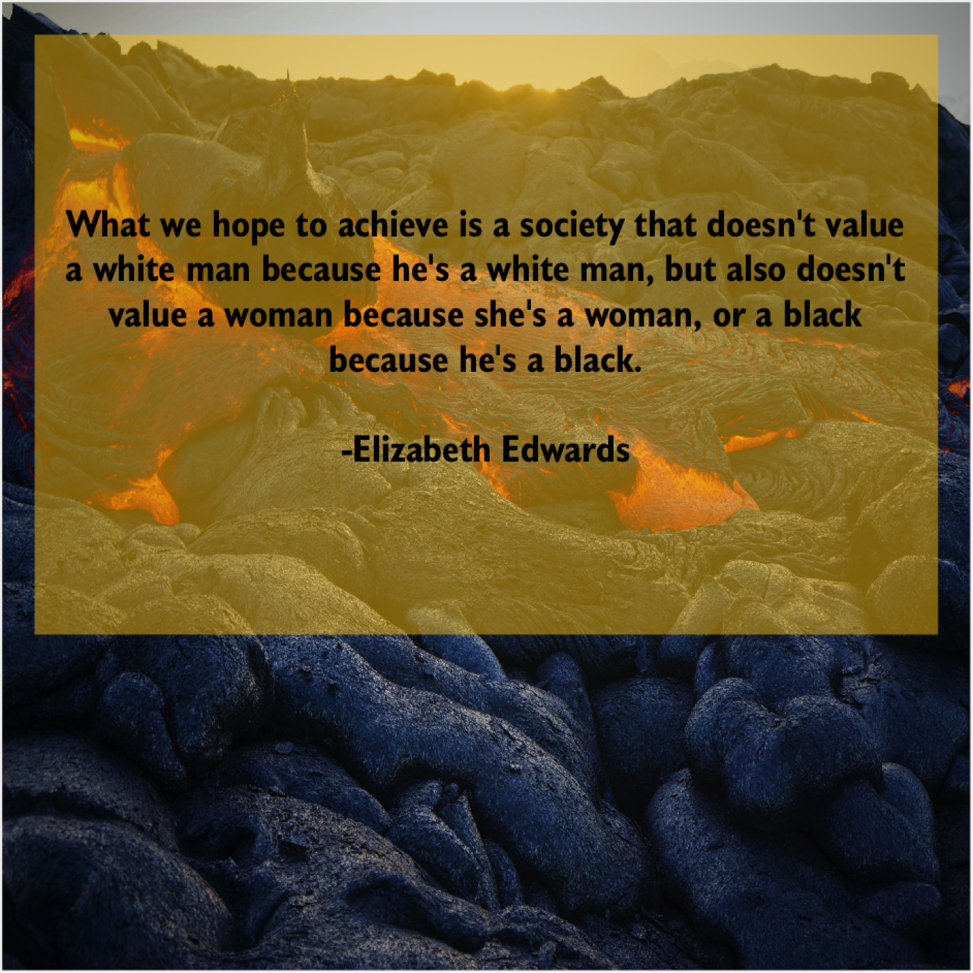Elizabeth Edwards Elizabeth Edwards – What we hope to achieve… March 28, 2019 admin “What we hope to achieve is a society that doesn’t value a white man because he’s a white man, but also doesn’t value a woman because she’s a woman, or a black because he’s a black.”-Elizabeth Edwards