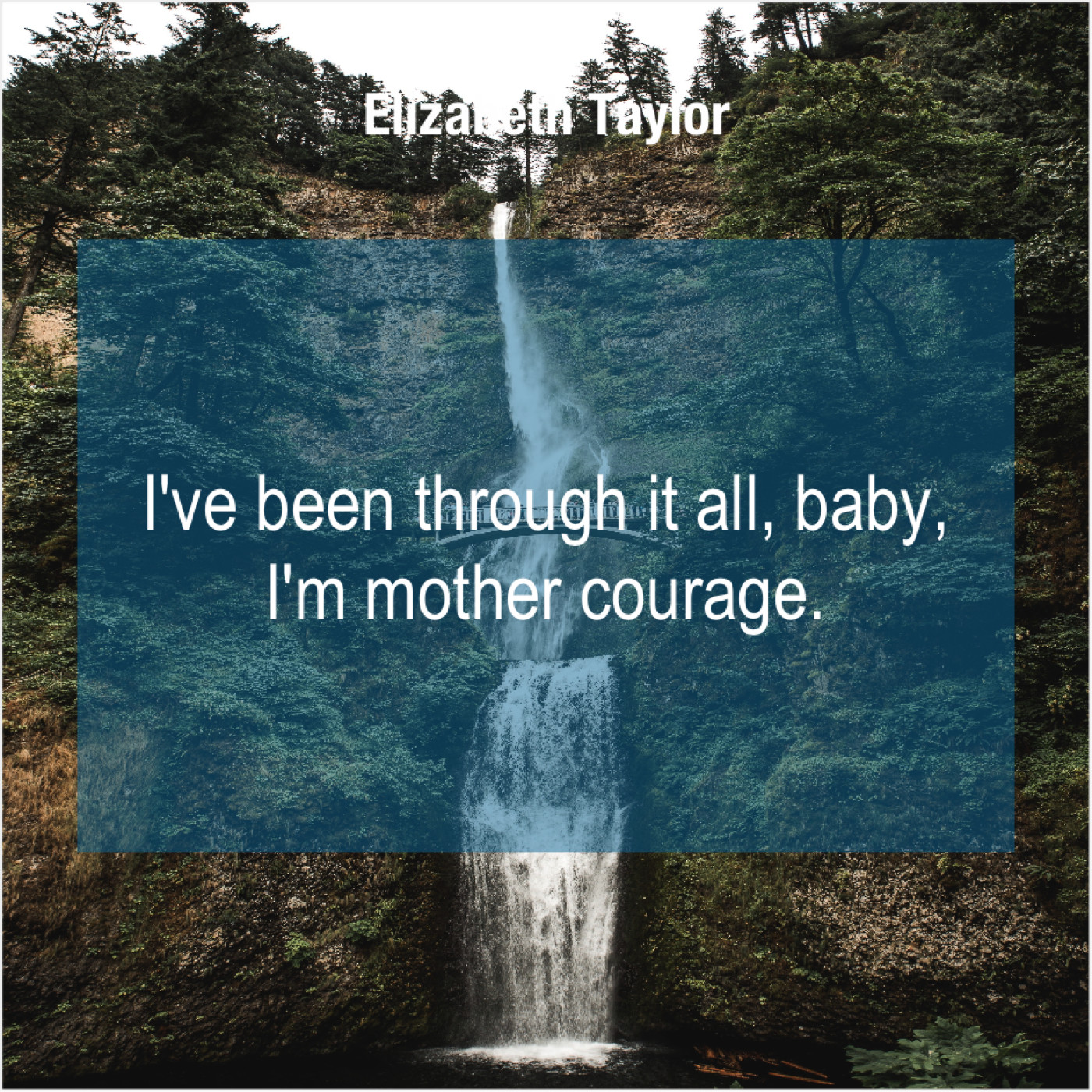 Elizabeth Taylor Elizabeth Taylor – I’ve been through it all… May 16, 2019 admin “I’ve been through it all, baby, I’m mother courage.”-Elizabeth Taylor