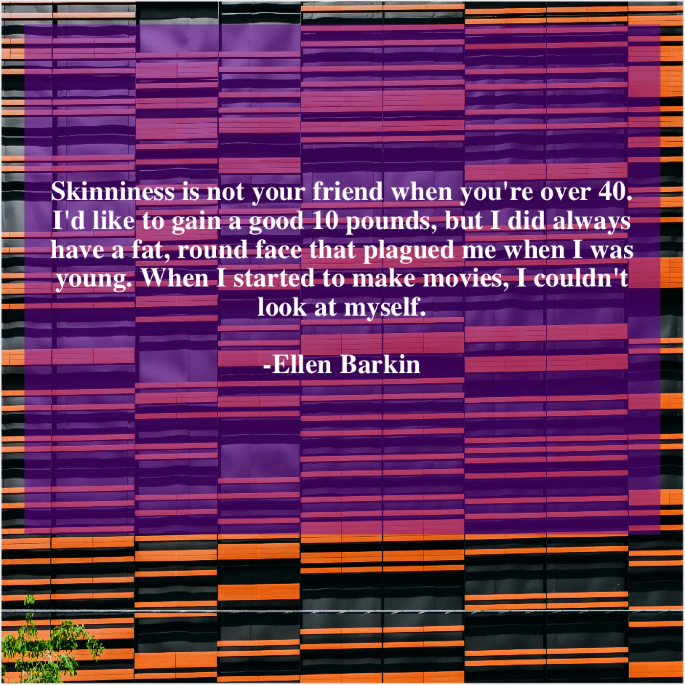 Ellen Barkin Ellen Barkin – Skinniness is not your friend… November 3, 2018 admin “Skinniness is not your friend when you’re over 40. I’d like to gain a good 10 pounds, but I did always have a fat, round face that plagued me when I was young. When I started to make movies, I couldn’t look at myself.”-Ellen Barkin