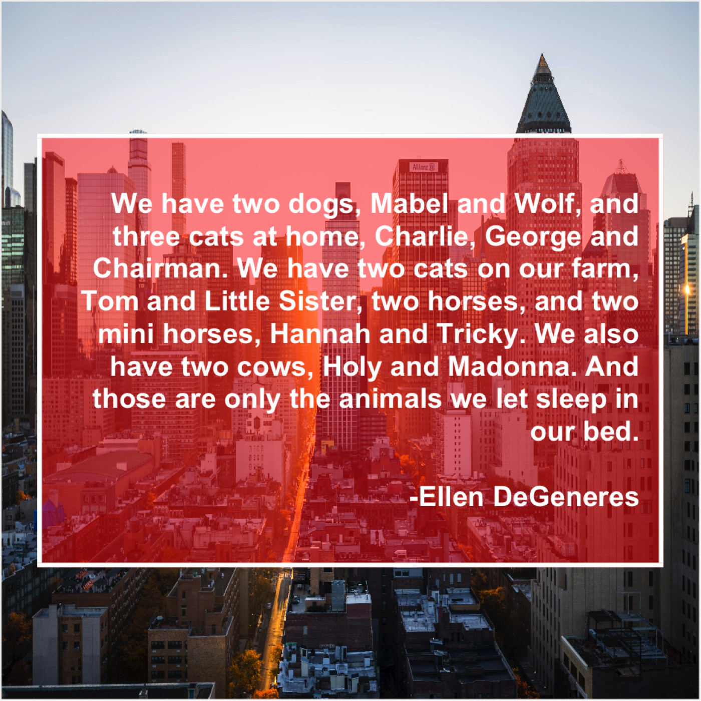 “We have two dogs, Mabel and Wolf, and three cats at home, Charlie, George and Chairman. We have two cats on our farm, Tom and Little Sister, two horses, and two mini horses, Hannah and Tricky. We also have two cows, Holy and Madonna. And those are only the animals we let sleep in our bed.”