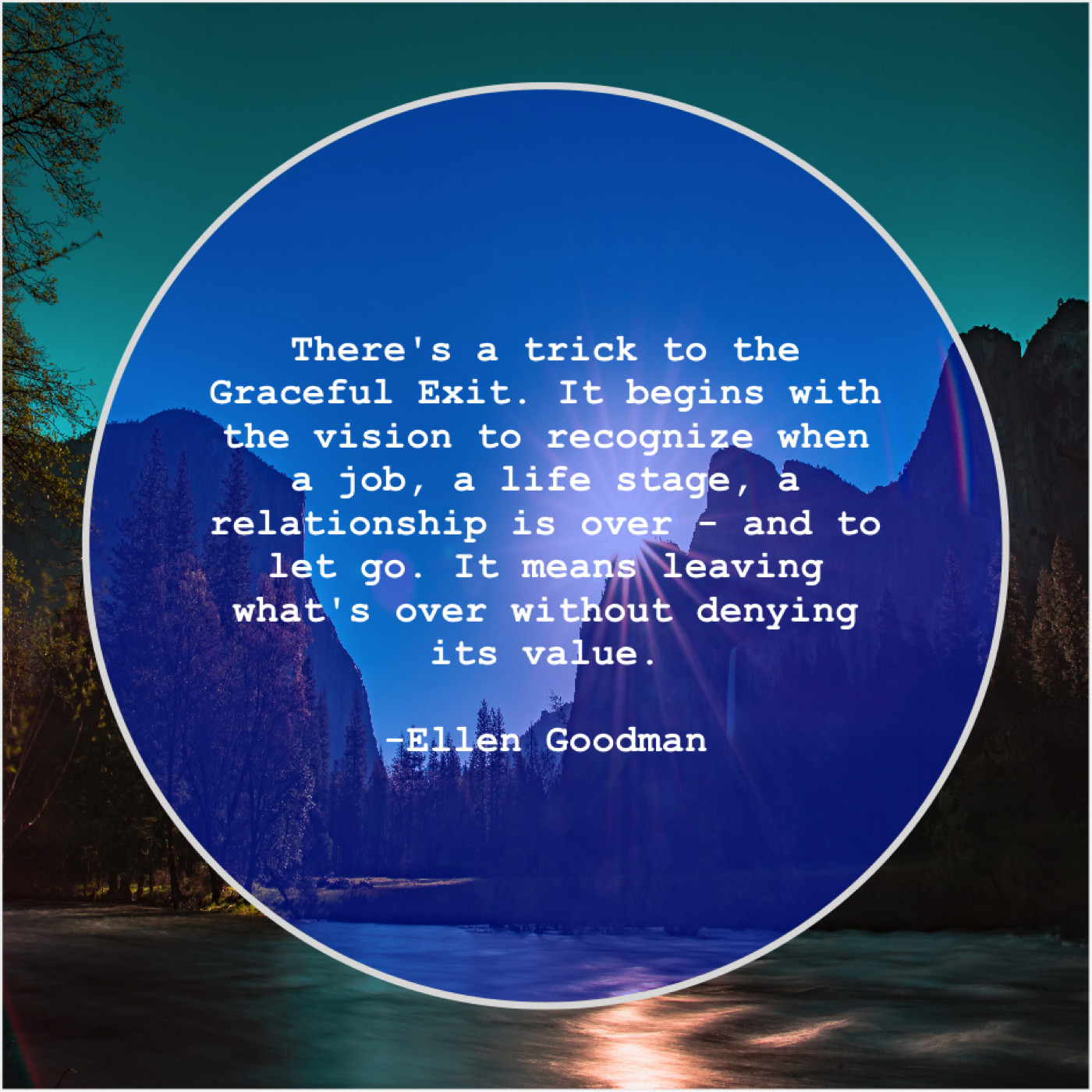 “There’s a trick to the Graceful Exit. It begins with the vision to recognize when a job, a life stage, a relationship is over – and to let go. It means leaving what’s over without denying its value.”