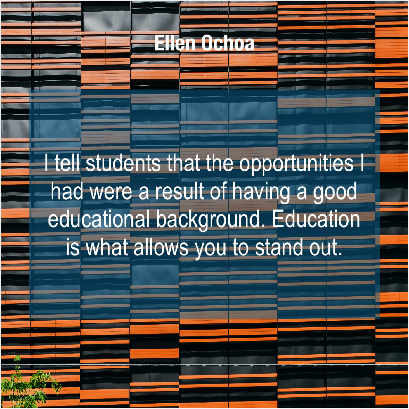 Ellen Ochoa Ellen Ochoa – I tell students that the… August 16, 2019 admin “I tell students that the opportunities I had were a result of having a good educational background. Education is what allows you to stand out.”-Ellen Ochoa