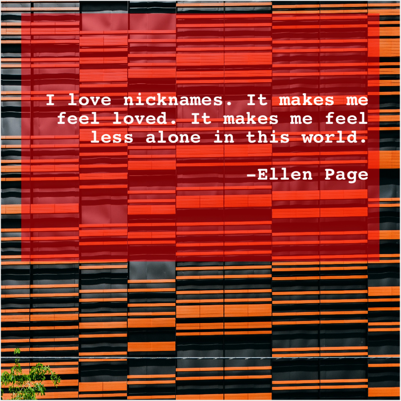 Ellen Page Ellen Page – I love nicknames. It makes… November 19, 2018 admin “I love nicknames. It makes me feel loved. It makes me feel less alone in this world.”-Ellen Page