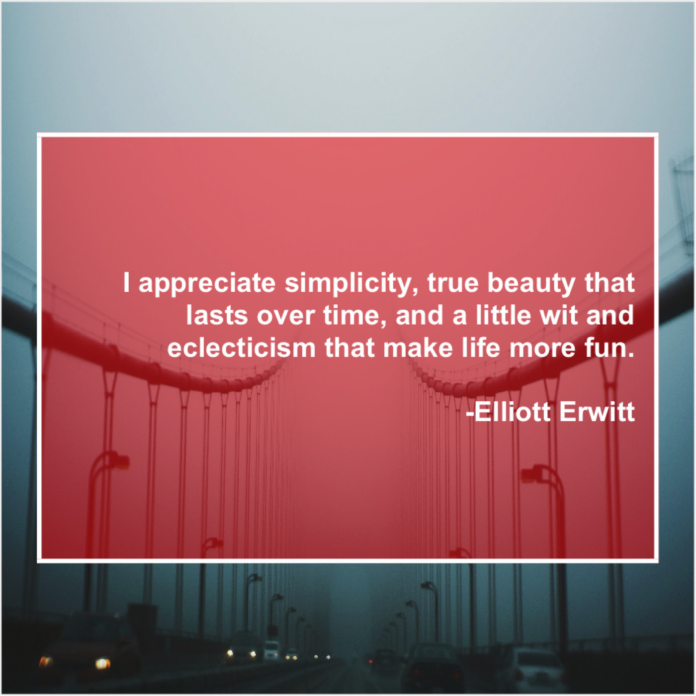 Elliott Erwitt Elliott Erwitt – I appreciate simplicity, true beauty… March 17, 2019 admin “I appreciate simplicity, true beauty that lasts over time, and a little wit and eclecticism that make life more fun.”-Elliott Erwitt
