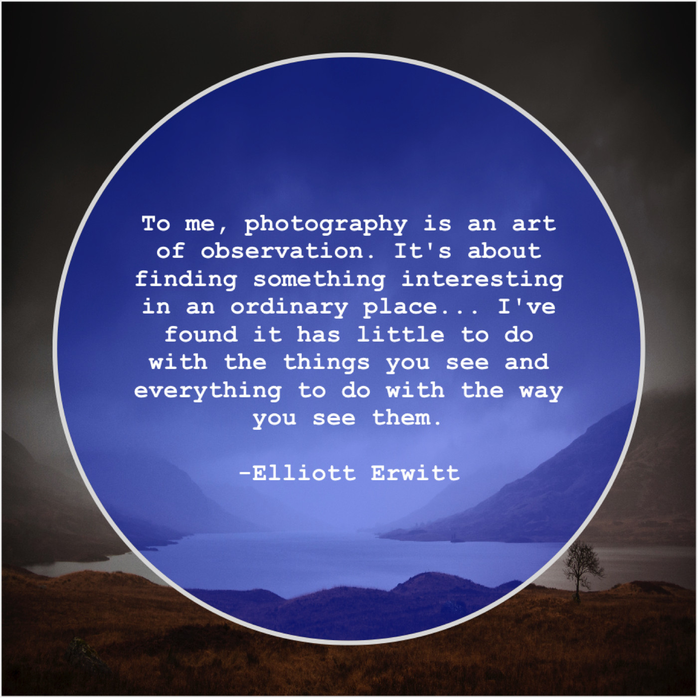 Elliott Erwitt Elliott Erwitt – To me, photography is an… December 13, 2018 admin “To me, photography is an art of observation. It’s about finding something interesting in an ordinary place… I’ve found it has little to do with the things you see and everything to do with the way you see them.”-Elliott Erwitt