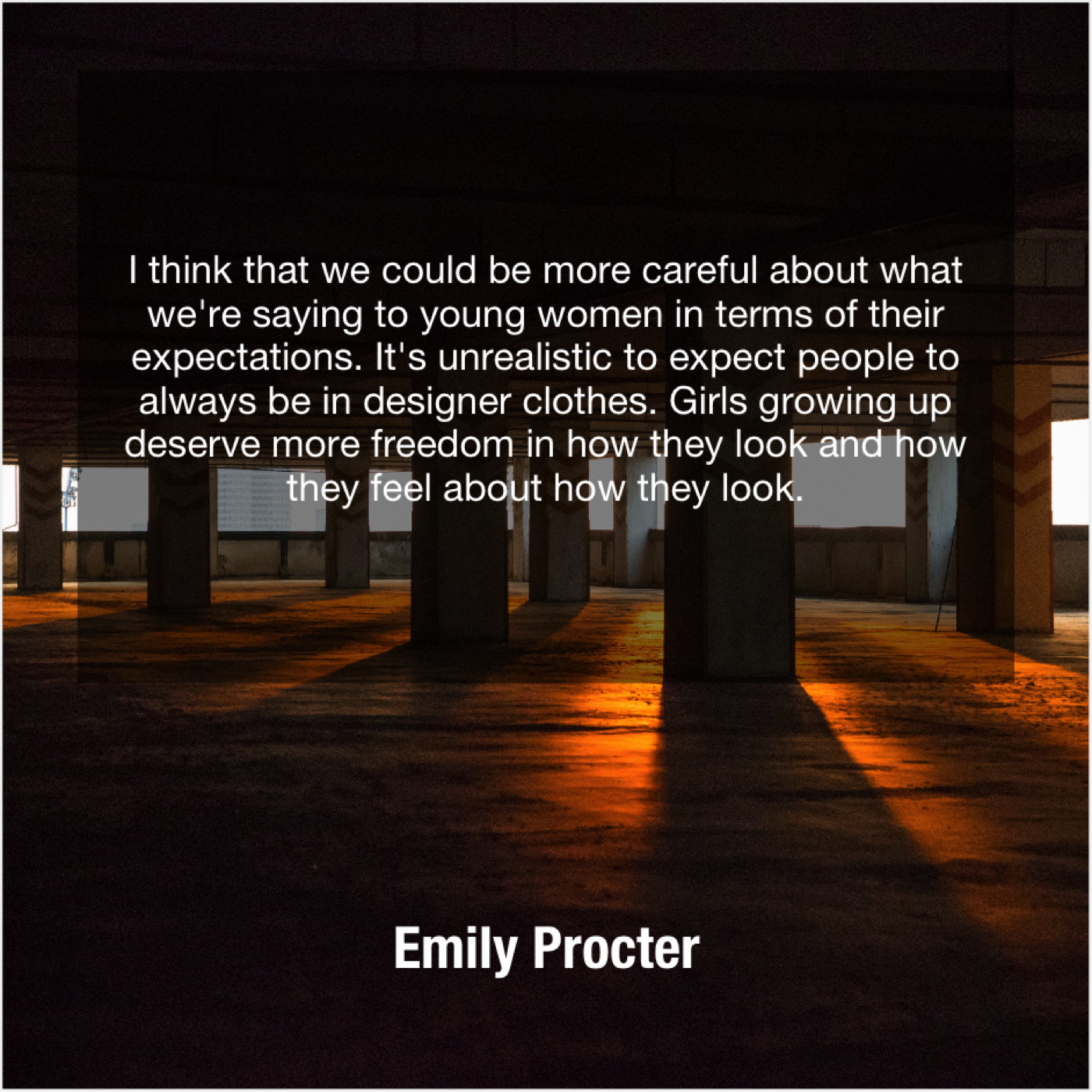“I think that we could be more careful about what we’re saying to young women in terms of their expectations. It’s unrealistic to expect people to always be in designer clothes. Girls growing up deserve more freedom in how they look and how they feel about how they look.”