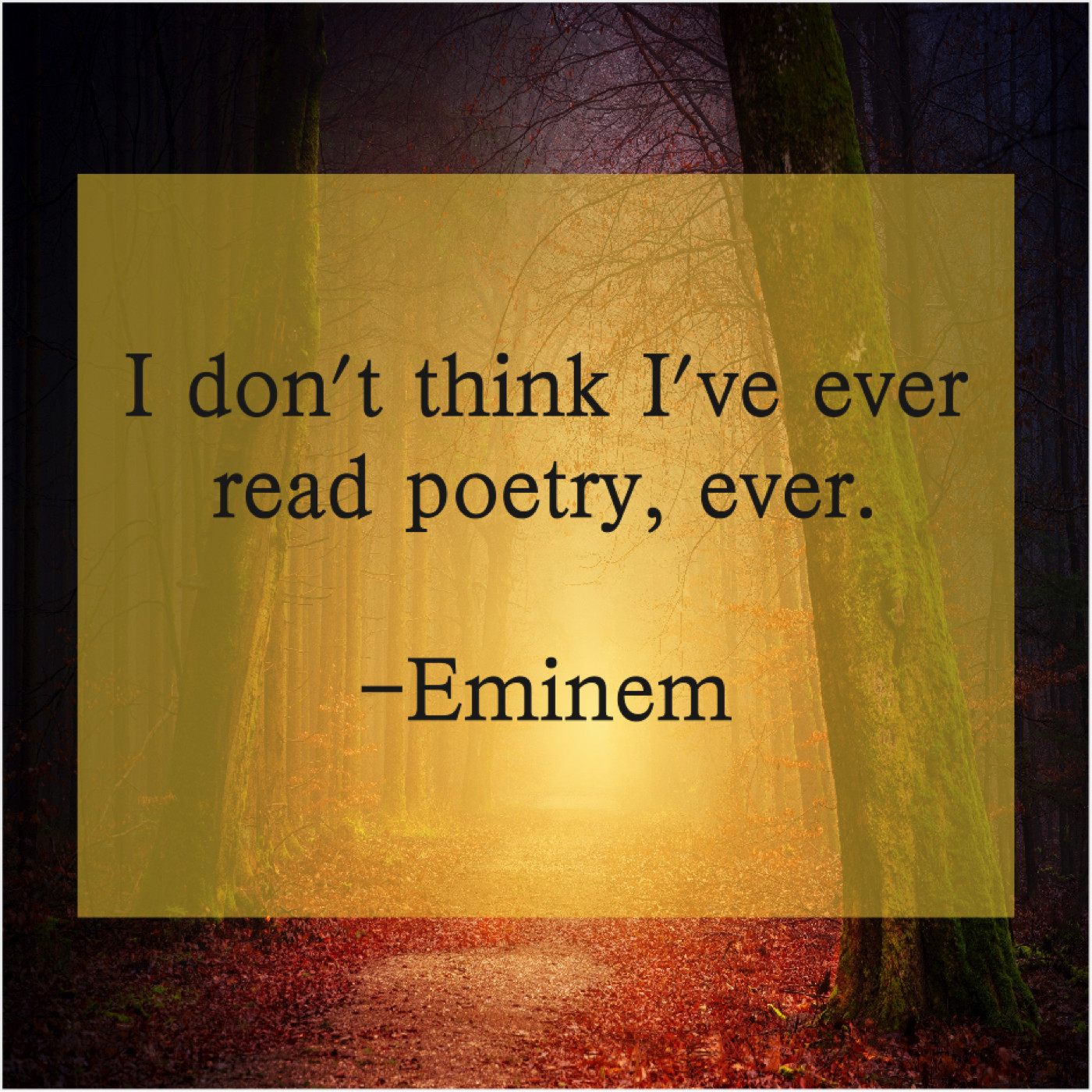 Eminem Eminem – I don’t think I’ve ever… January 4, 2019 admin “I don’t think I’ve ever read poetry, ever.”-Eminem